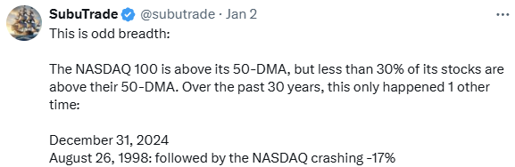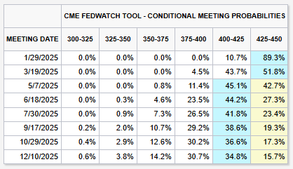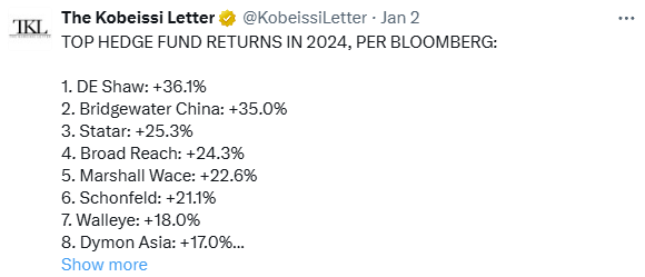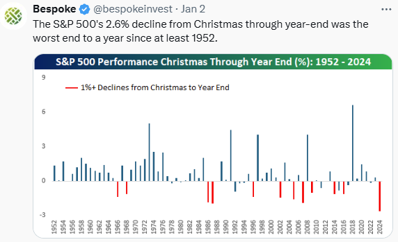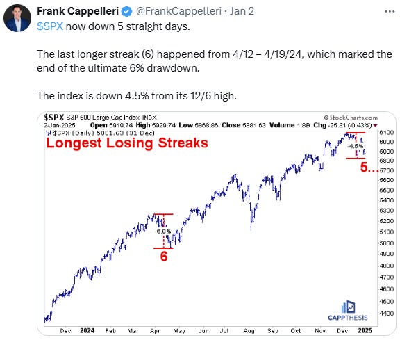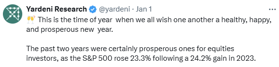I included this to point out that we had two stellar years in a row. When I started publishing this newsletter at the beginning of 2024, I reiterated that we don't go up one year and down the next. So just because 2022 was rough, and 2023 was nice, does not mean that 2024 would be rough, people can be very short-sighted. Now, at the beginning of 2025, my message is that we can't expect outsized returns every year. This doesn't mean 2025 will be down, but a more modest gain is likely.
