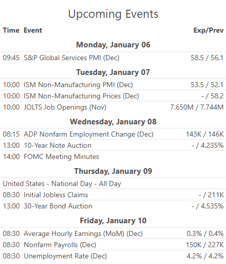 Nothing last week moved the market, and this week looks a lot more of the same. I don't see anything on this schedule to make me feel something either way.