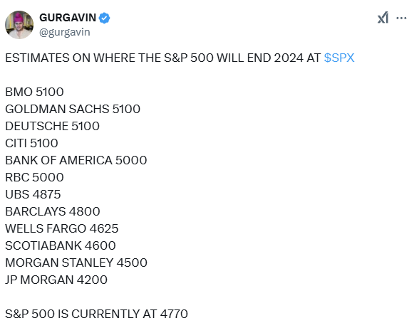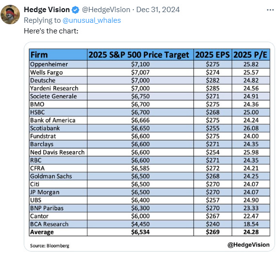 But for context, here are the guesses for the end of 2024. We opened at 4745, and closed at 5886, well above predictions, so it's anyone's guess. This is more for fun than anything else, we can't predict where the market will go that far out with any accuracy. It's hard enough to get the next week correct…