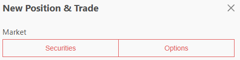 We can select Securities or Options. Note, we would select Securities whether it's a stock, an ETF, or a futures contract.