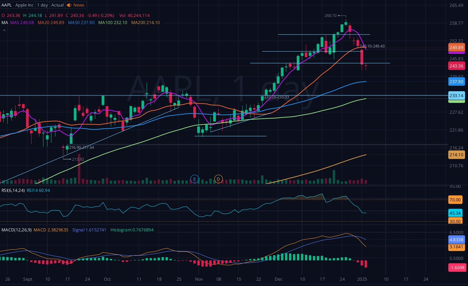 Apple continues to not align with the market. Down 4.8% this week, and honestly look like we will get to the 235-238 range. More downside expected. This adds headwinds to the market, but given it hasn't had too much correlation recently, perhaps it's nothing to worry about.
