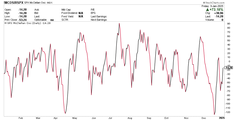 We are not overbought or oversold, and bouncing here. At -14 up from -30 last letter.