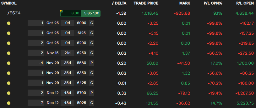 The top three strikes will expire today and be removed from my account. I will most likely have to enter some more long calls on Monday, unless we drop some, to increase available buying power. Today I entered 2 more short puts, this time at 5700. I did FOMO into them and entered near the top, so I am currently down. I also rolled up and out my short calls. I will feel more comfortable when they are above 6k. For now, I will continue to hold for about 2 weeks, and then roll them again. Once buying power usage calms down, and I have more wiggle room I will hold deeper into expiration, so that I can bleed more extrinsic value out of them. I am currently sitting at 53.8% YTD, up decently from last week when I was sitting at 38%