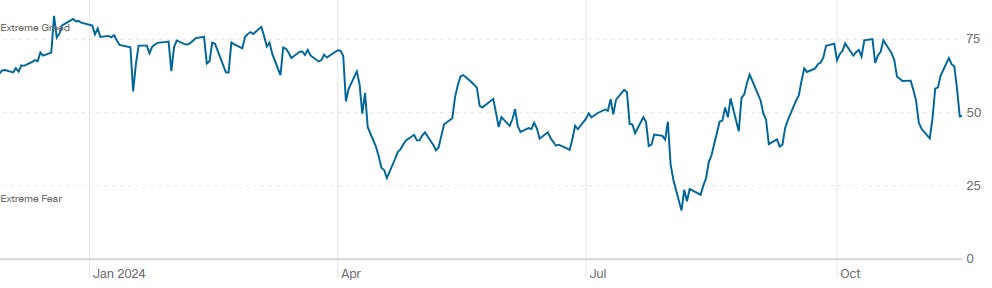 Fear in greed is once again sitting at 49. Could go either direction from here, but given the larger trend, this could signify a bottom.