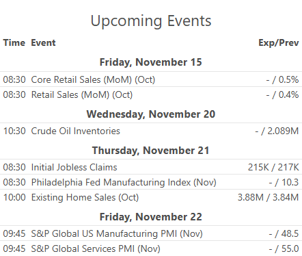 Jobless claims came in better than forecast, but core retail missed today. I think this could be negative news for WMT and TGT next week, but that could be priced in at this point? I will say TGT has a really nice base here above 150, and WMT has been killing it since mid-May. I’m sure all eyes next week will be on NVDA earnings. There are a lot of other earnings, but not big names. None of the events for next week look interesting to me.