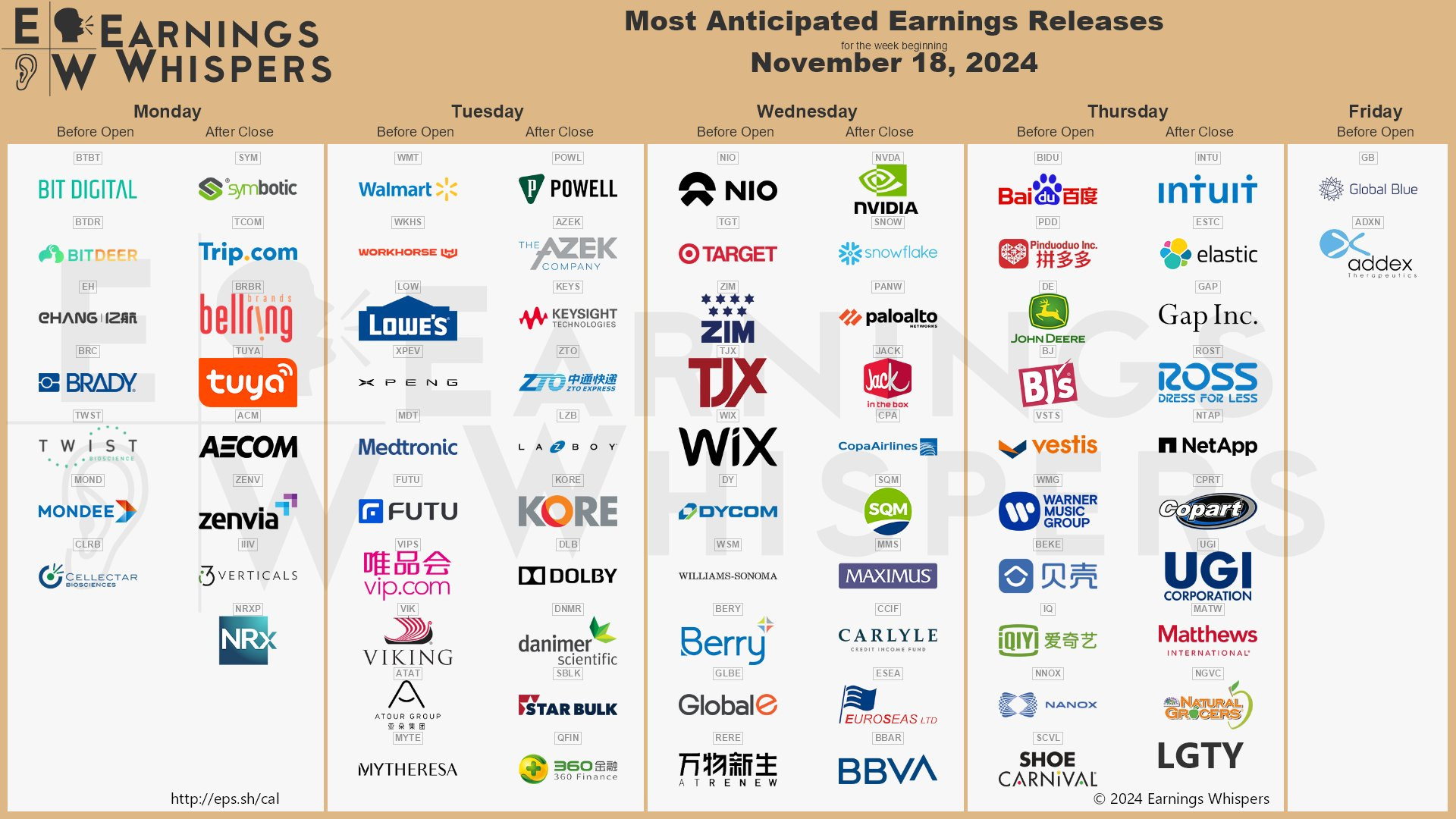 NVDA is big earnings next week, but the rest of the earnings are either smaller names, or retail, which just reported less good numbers this AM in general.