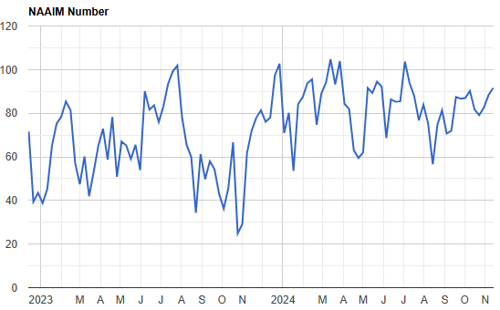 NAAIM unfazed and continuing to build its position this week. From 88 last week to just under 92 this week.