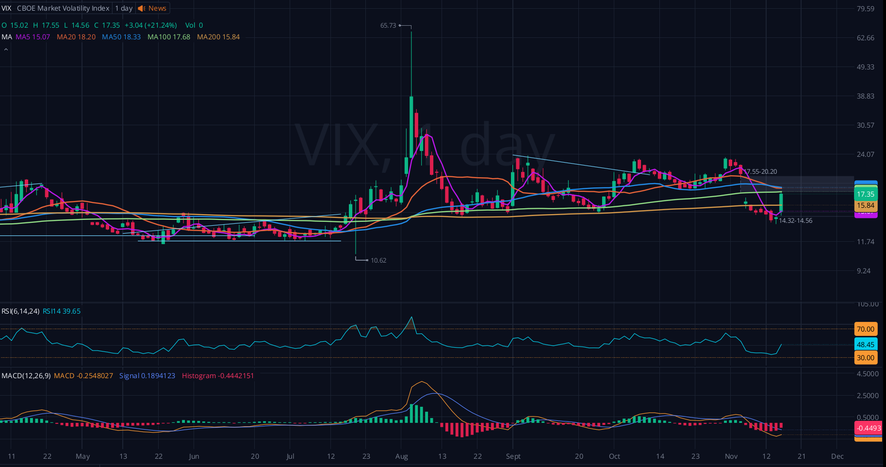 Vix is up nearly 16% this week, basically all of that coming from Friday’s move down in SPX.