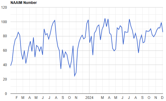 NAAIM is down slightly, but in fairness, it was near its highs. Was 99 last letter and moved down to 85.5 this week.