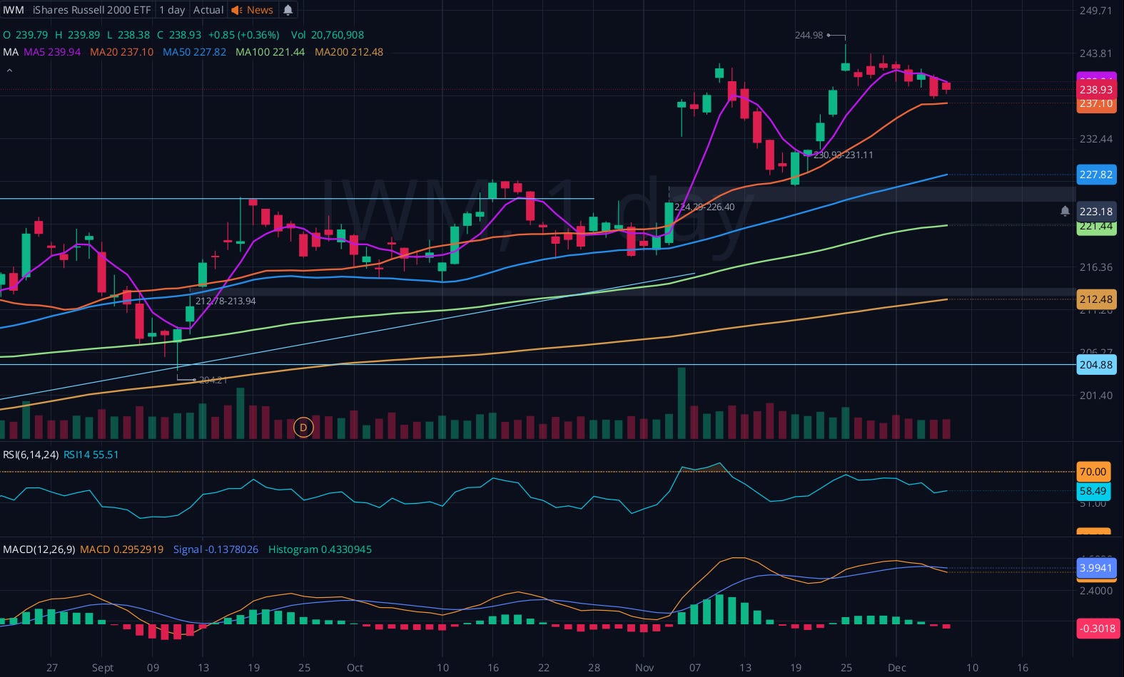 I’d be interested in picking IWM up at 232 and even more at 227. We will see if that happens or not (setting my alerts). Down 1.2% this week.