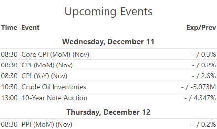 Pretty light week this week with only a couple earnings and really only CPI and PPI.