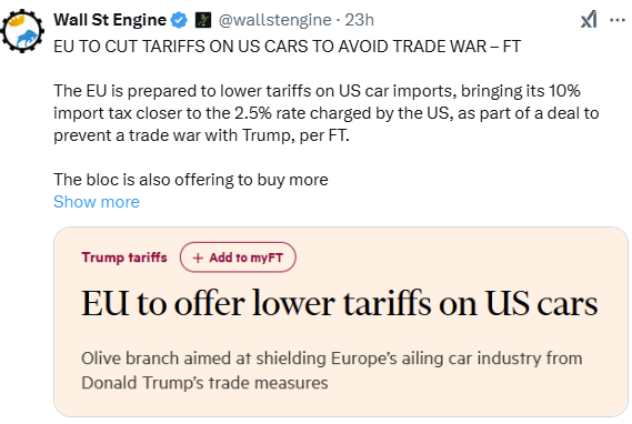 This is bloody brilliant. I haven't heard Trump talking about EU, but getting out ahead of it, showing good will, will make him look like an ass to start threatening them. It is also good for our businesses, and the market in general. It also gives us more padding in case one of our threats goes south and burns a bridge during this administration.