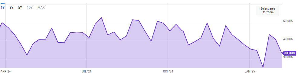 Typically, the bears v bulls is a good counterpoint. With bulls at a low, this does give me more confidence that we will resolve higher, baring any negative Trump talk outcomes.