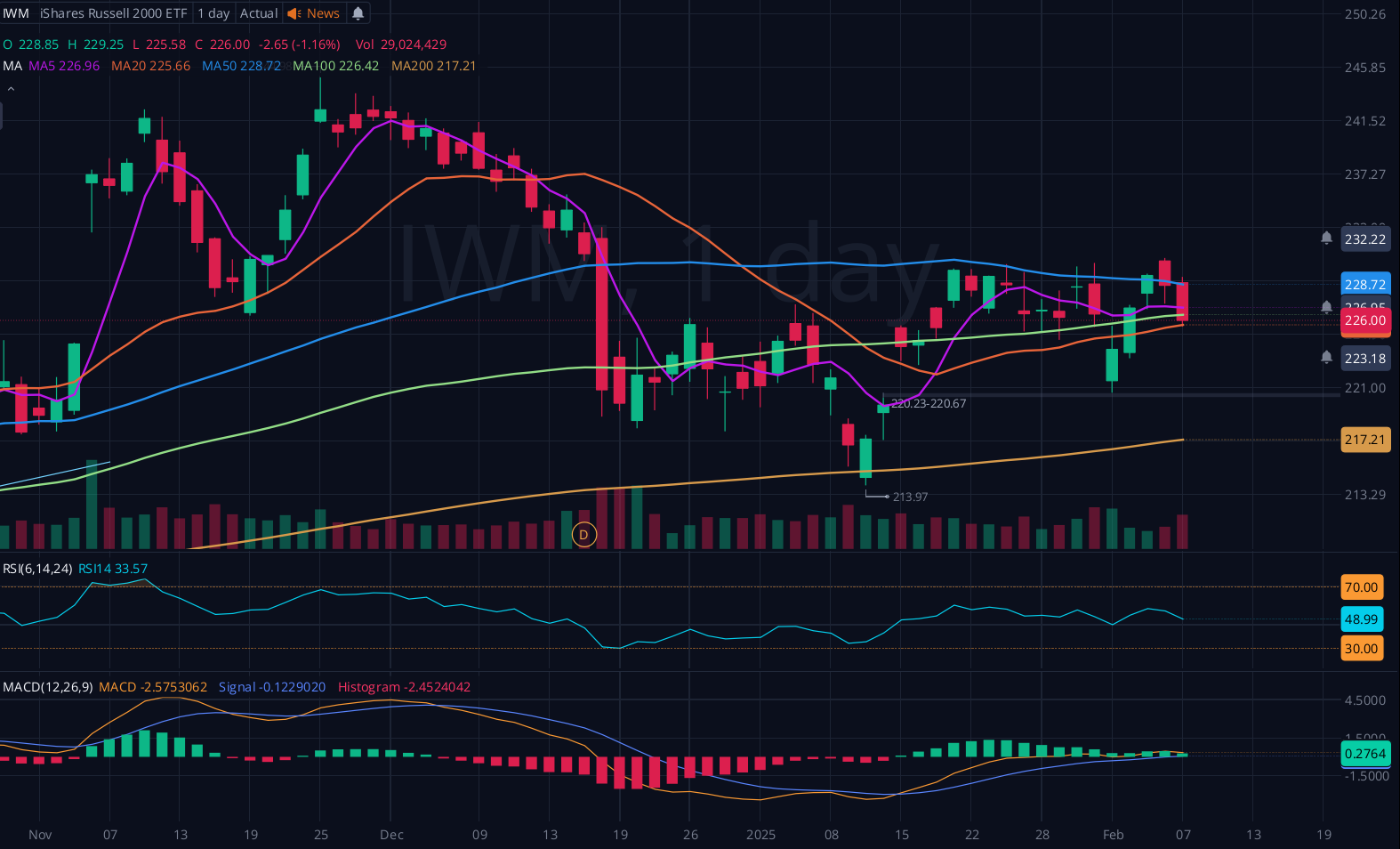 IWM kinda looks interesting here. It's been slowly floating higher, hovering on its sma’s. I'm still too jaded to enter, but getting strikes below 220 could work.