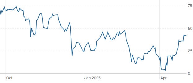 SPX has made a higher low and high. The smas are all still mostly down, but we’ve cleared all but 2. That said, the recovery is coming up against some heft resistance and tariffs still aren’t resolved.